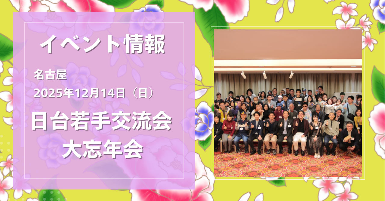 【イベント情報】12/14 日台若手交流会「大忘年会」@名古屋クラウンホテル
