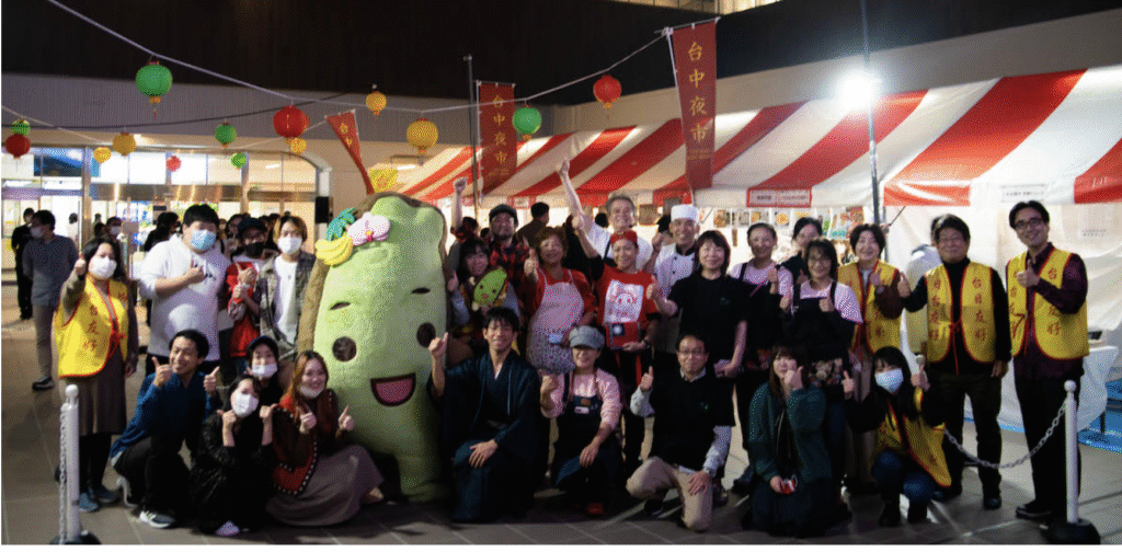 ありがたいことに、台中市にも、私たちと同じく「交流を深めたい」という思いを持つ方々がたくさんいらっしゃるんですよ。2024年10月26・27日に台中市内で行われた「2024台中名古屋夜市×西川祭」には驚かされました。ここは名古屋かな?と錯覚するぐらい、日本文化と名古屋の味が溢れる夜市でした(笑)